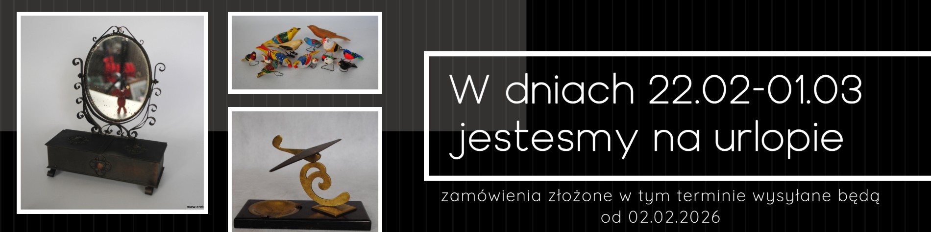 Witamy na naszej stronie. Zapraszamy Cię na podróż w czasie! Odkryj z nami przedmioty które przygotowaliśmy po to aby wzbudzały zachwyt i wspomnienia. Od kultowych pozycji kolekcjonerskich aż po niepozorne „perełki” które nadadzą charakter czy podkreślą Twoje poczucie estetyki. Każdy opowiada ciekawą historię i jest wyjątkowy. Proponujemy ceramikę, szkło, dekoracje, tkaniny, zegarki, oświetlenie, biżuterię, fotografie czy drobne meble. Rozejrzyj się i znajdź coś dla siebie.