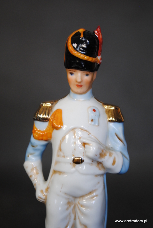 Porcelanowa figurka przedstawiająca żołnierza, produkcja Alfretto. Biała porcelana ręcznie malowana.