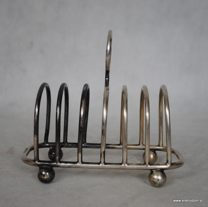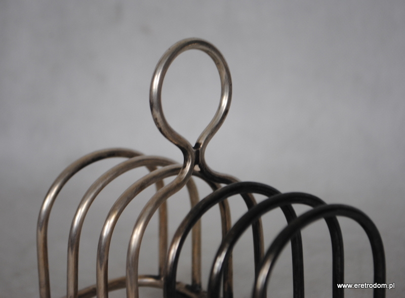 Stojak na tosty angielskiej firmy Walker i Halla. Wyprodukowany w I poł. XXw. Metal platerowany galwanicznie. Używany w okresie drugiej wojny światowej przez jednostki RAF-U Royal Air Force-Brytyjskie siły powietrzne. Czy ten przedmiot pamięta brutalne oraz bohaterskie czasy bitwy o Anglię?