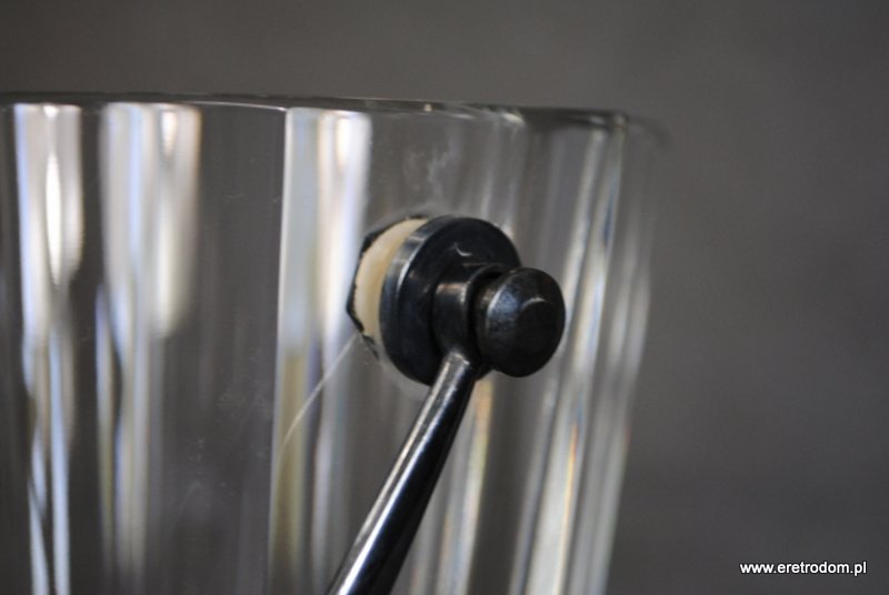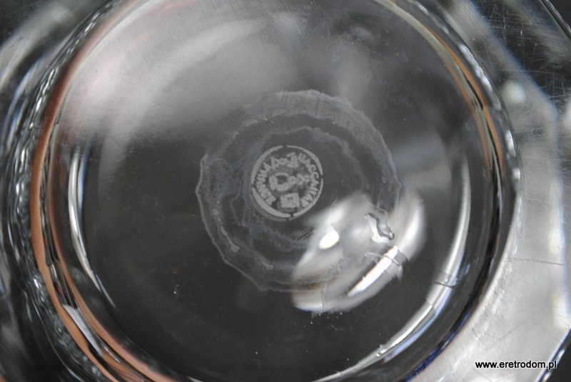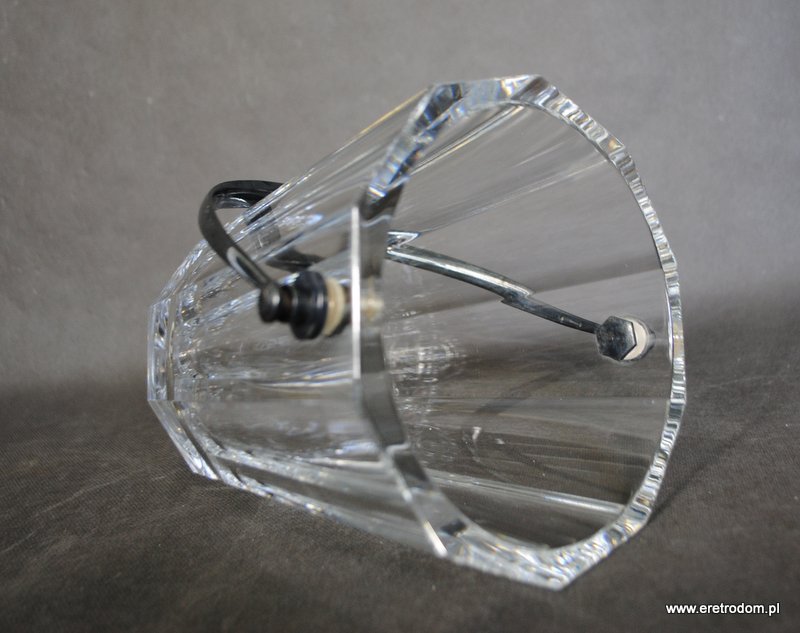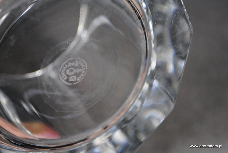 Kryształowy cooler wyprodukowany we Francji przez firmę Baccarat. Grube, czyste szkło ołowiowe. Rączka metalowa. Od spodu oraz na rączce oznaczenie producenta.