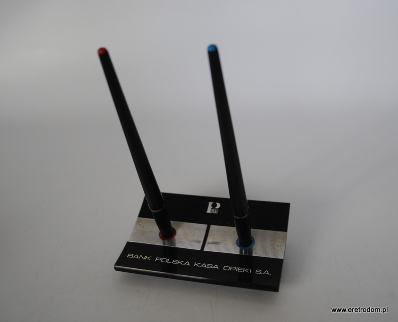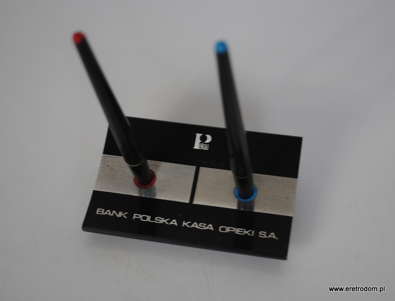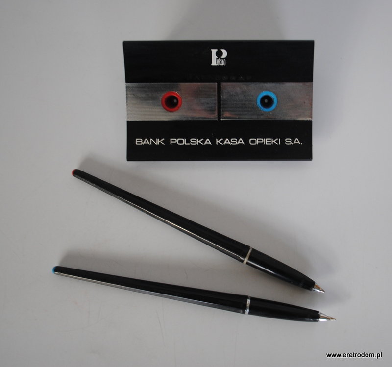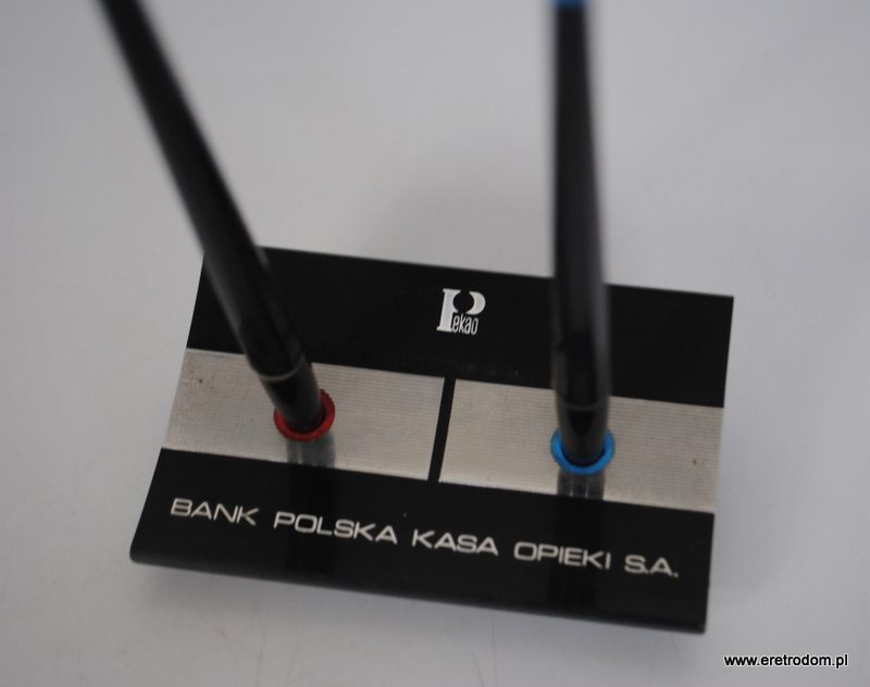 Długopisy reklamowe banku PKO BP. Sygnowane Ballograf. Całość na stojaku.
