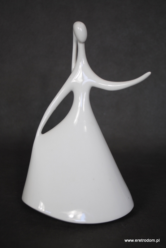 Figurka „Pierwszy bal”, sygnowana Bogucice. Projekt Eryki Trzewik-Drost z 1958 roku. Biała porcelana, od spodu sygnatura producenta.