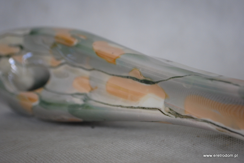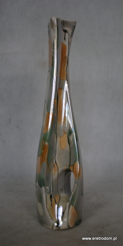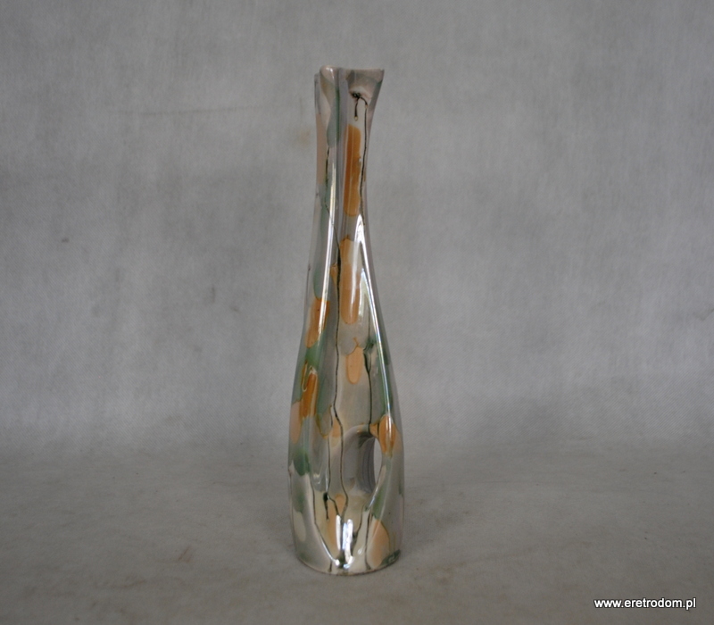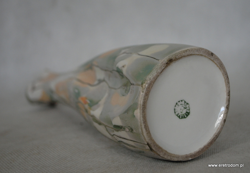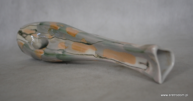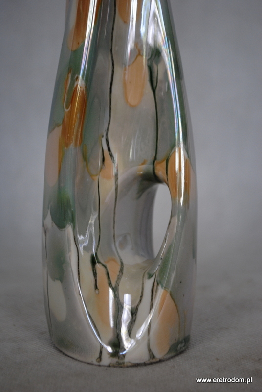 Wazon z dziurką, produkcja Bogucice. Biała porcelana ozdobiona szkliwem naciekowym.