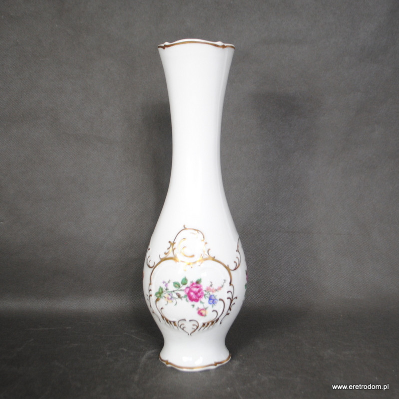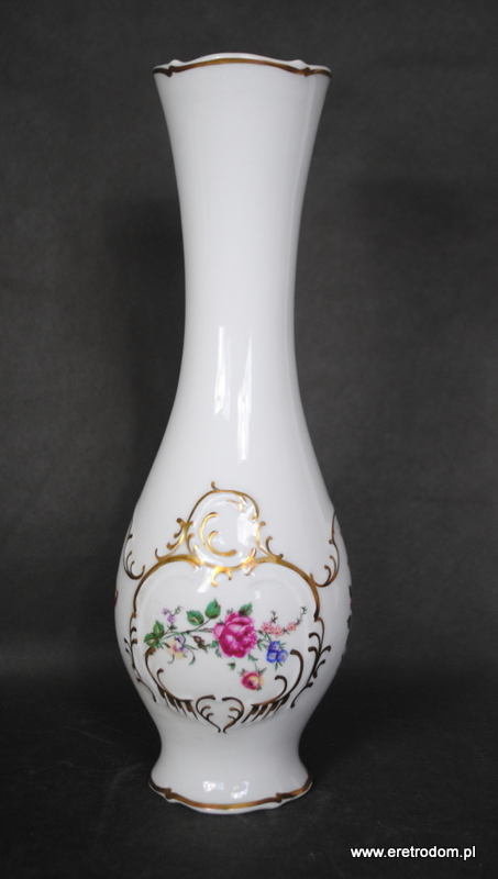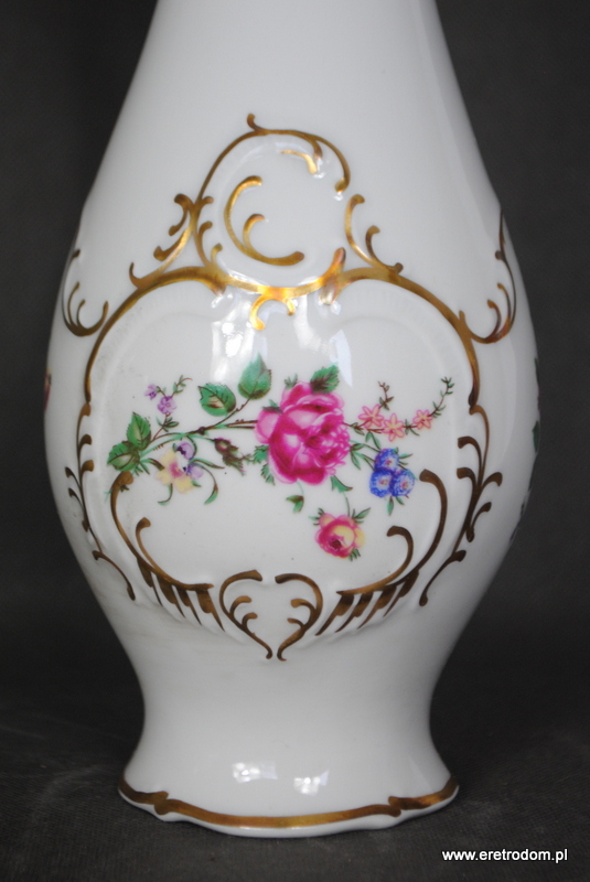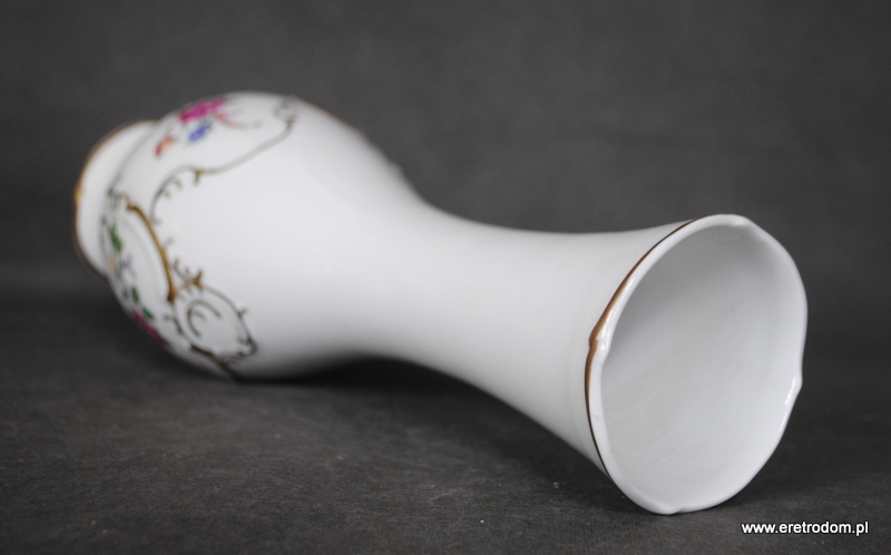 Wazon, Bogucice, II poł. XXw. Biała porcelana ozdobiona motywem kwiatowym, złocona.