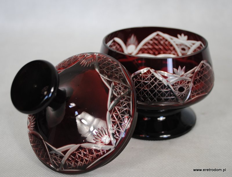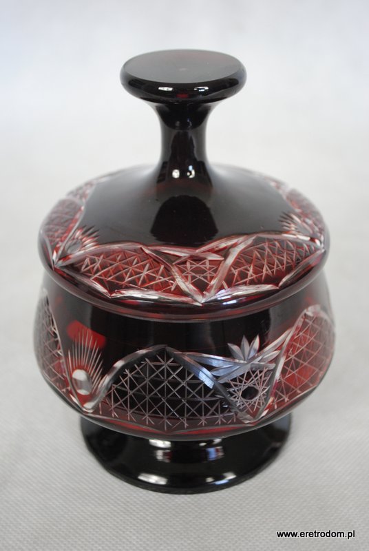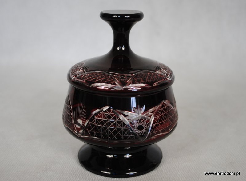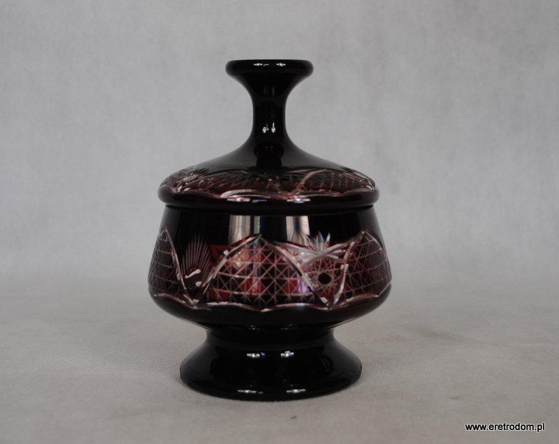 Bomboniera w burgundowym kolorze. Kryształ pięknie szlifowany.