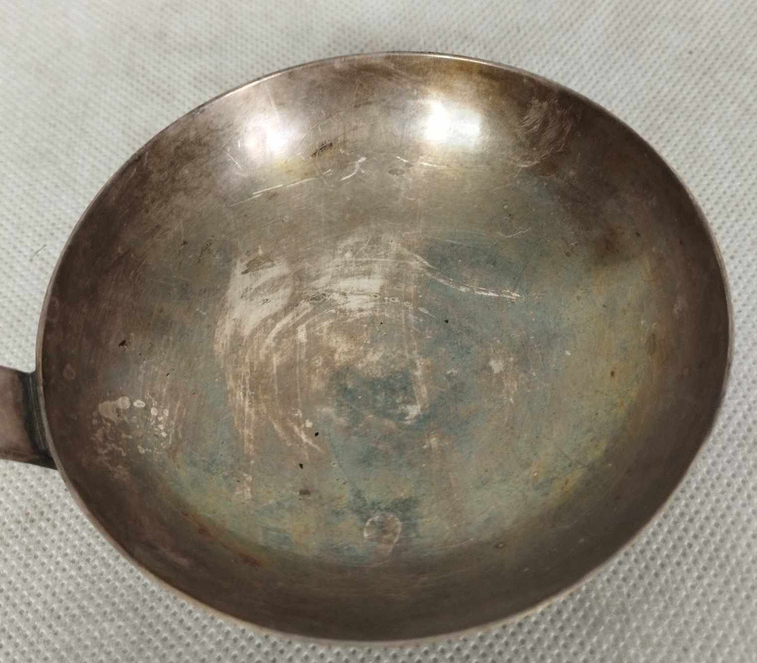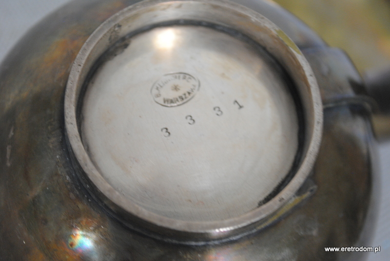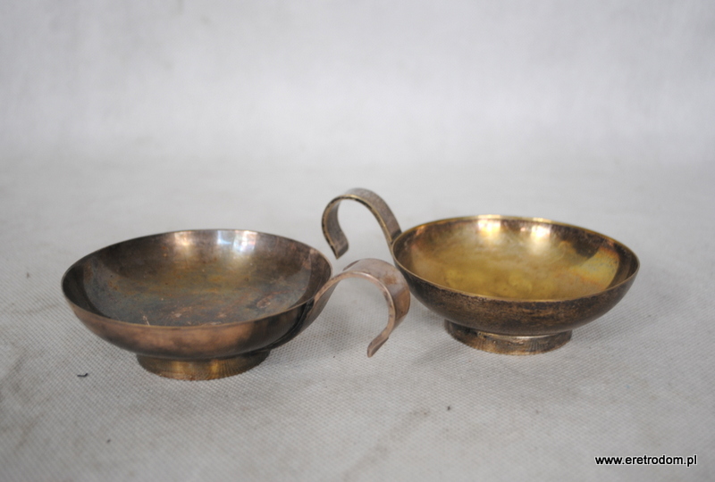 Para czarek czy też filiżanek Br. Henneberg, Warszawa, lata 30 XXw. Numer produkt to 3331. Mosiądz platerowany. Od spodu sygnatura producenta.
