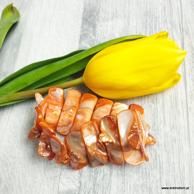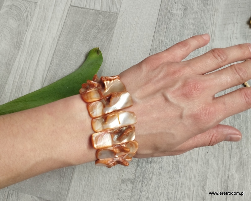 Bransoleta wykonana z muszli szlifowanych. Na gumce.