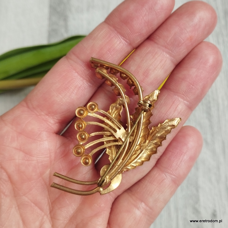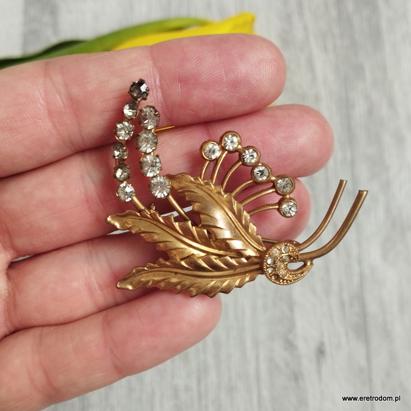 Broszka wykonana z mosiądzu . Ozdobiona ładnymi kamieniami.