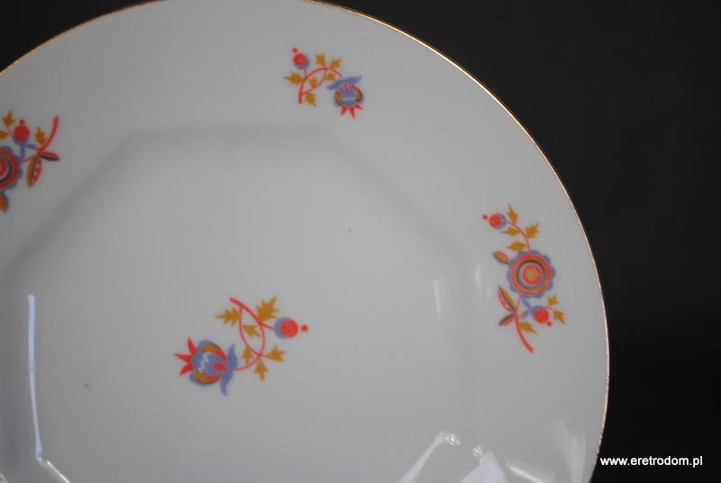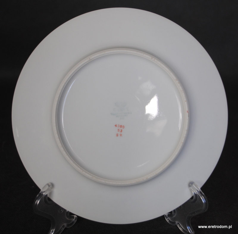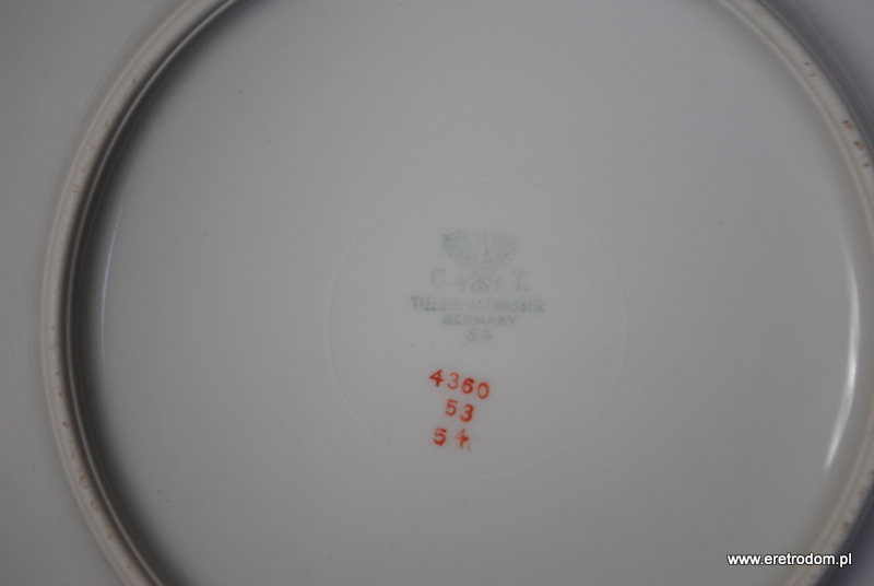 Talerzyk deserowy, Carl Tielsch, Wałbrzych. I poł. XXw. Porcelana w kolorze złamanej bieli ozdobiona kwiatową kalką.