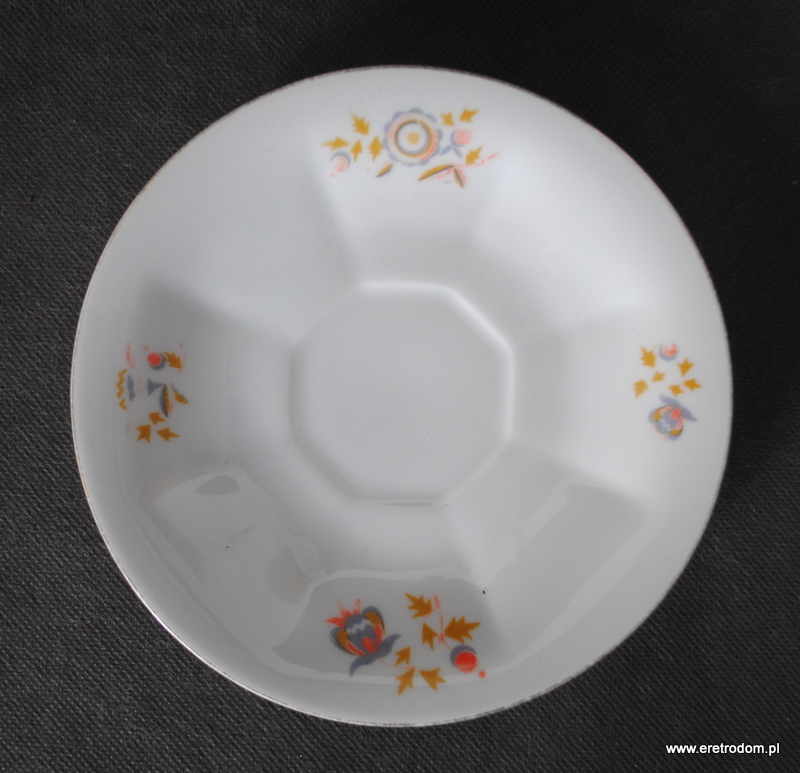 Filiżanka ze spodkiem, Carl Tielsch (Wałbrzych Stary Zdrój). I poł. XXw. Biała porcelana ozdobiona kwiatową kalką, rant złocony.