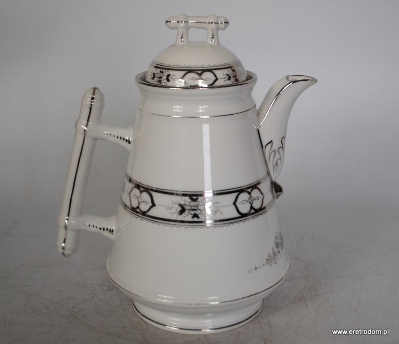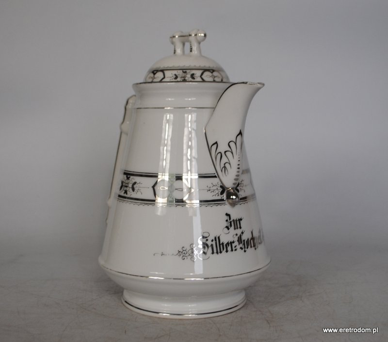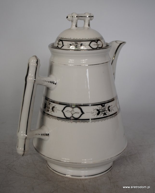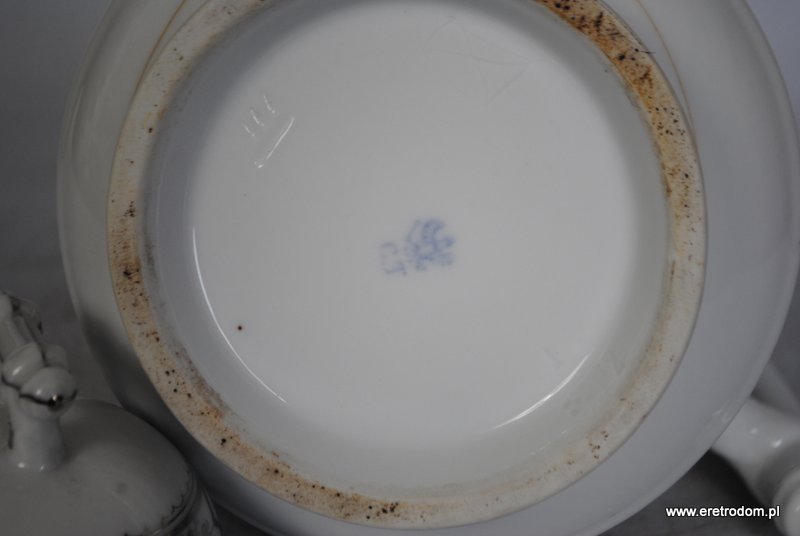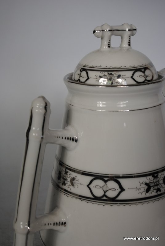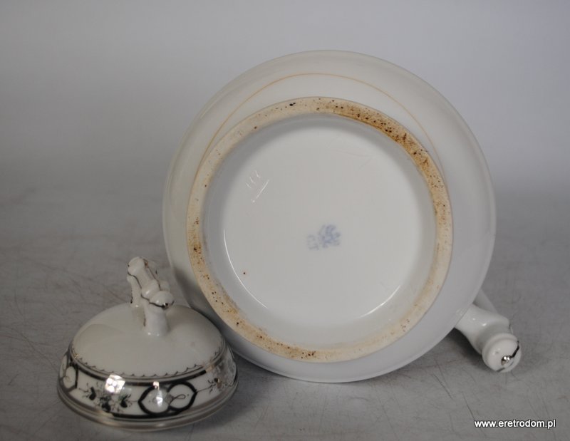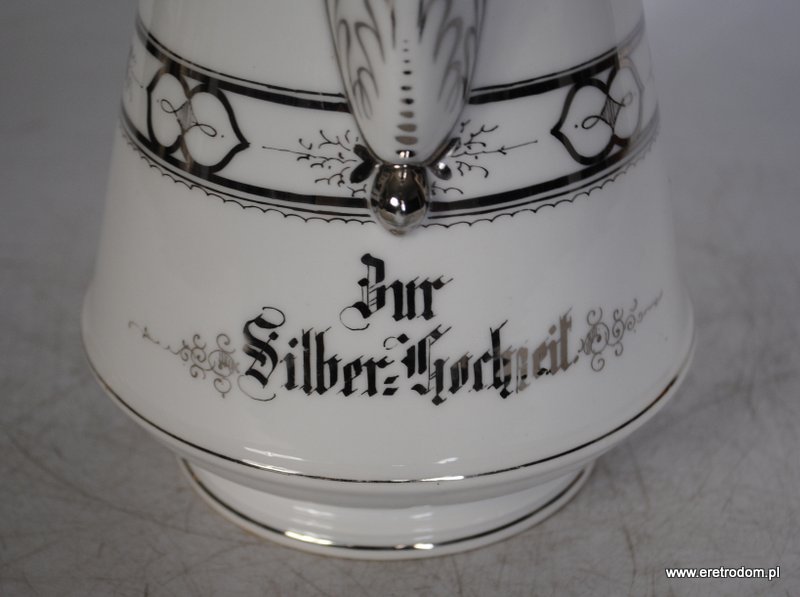 Dzbanek patyczak, I poł. XX w. Carl Tielsch (Wałbrzych Stary Zdrój). Biała, porcelana ręcznie malowana.