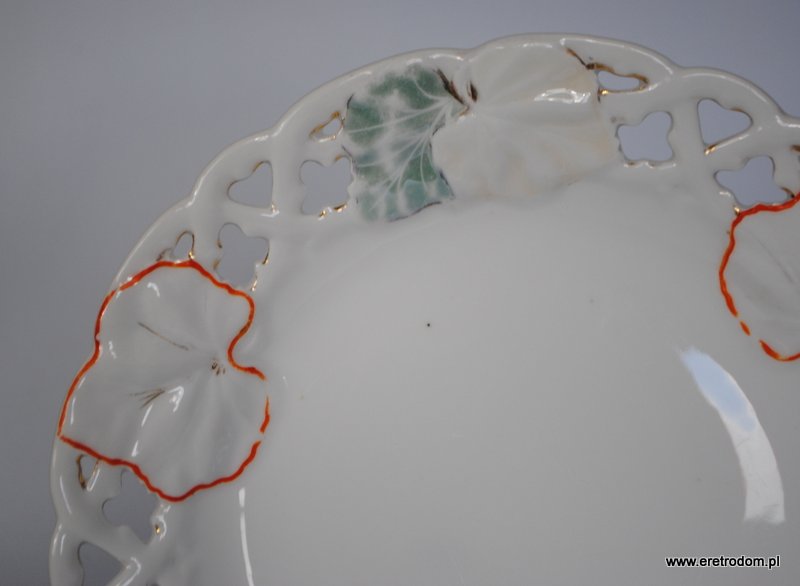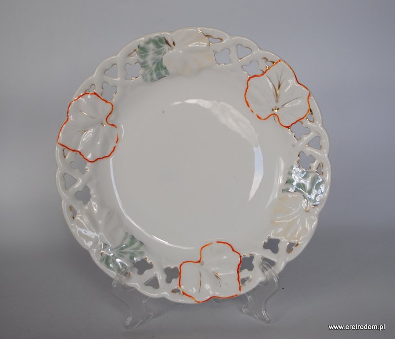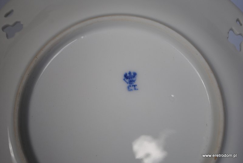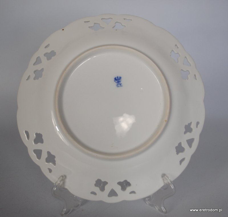 Talerz dekoracyjny sygnowany Carl Tielsch (Wałbrzych, Stary Zdrój), II poł. XIXw. Biała porcelana ręcznie malowana.