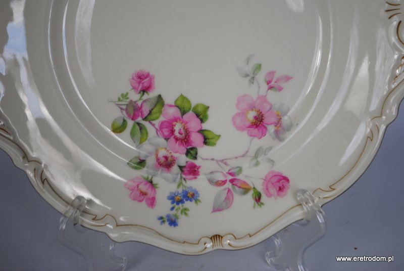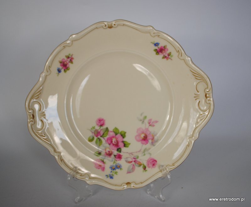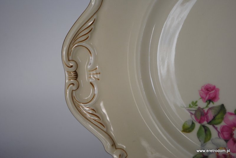 Talerz dekoracyjny sygnowany Carl Tielsch (Wałbrzych, Stary Zdrój), I poł. XXw. Porcelana w kolorze ecru ozdobiona kwiatową.