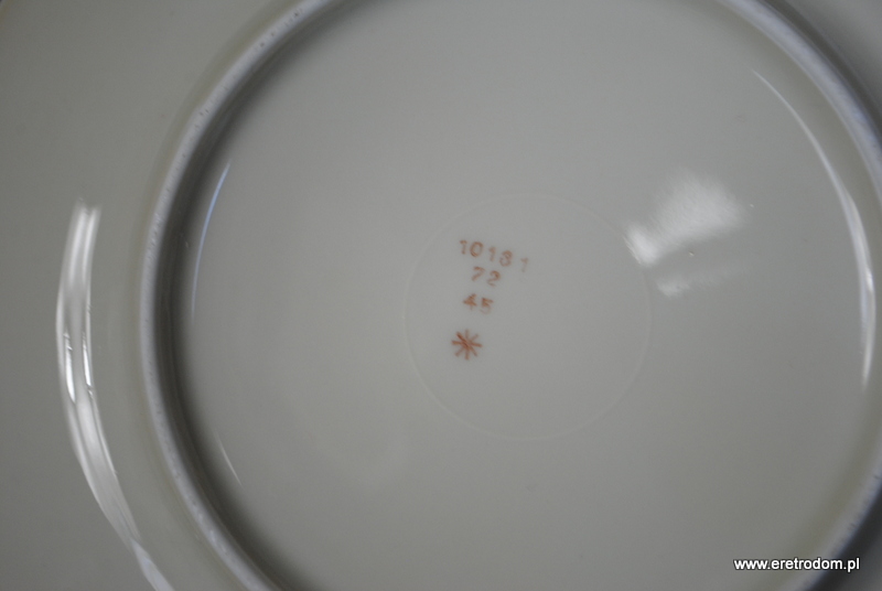 Talerzyk deserowy, Carl Tielsch, Wałbrzych. I poł. XXw. Porcelana w kolorze złamanej bieli ozdobiona kwiatową kalką.