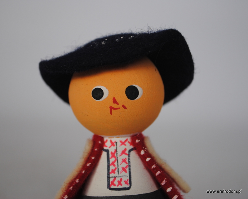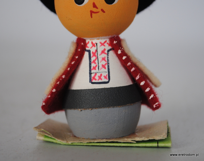 Laleczka przedstawiająca górala. Pamiątka turystyczna. Cepelia, II poł. XXw. Drewno + filc. Od spodu etykieta.