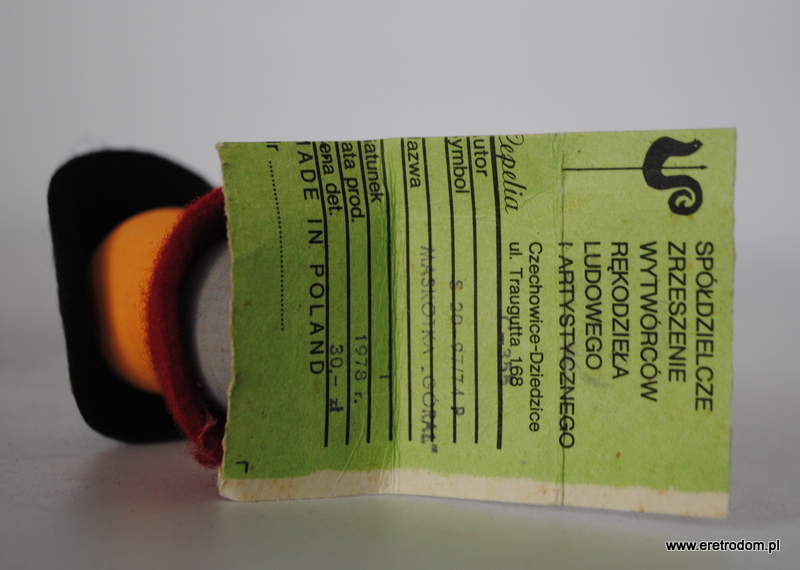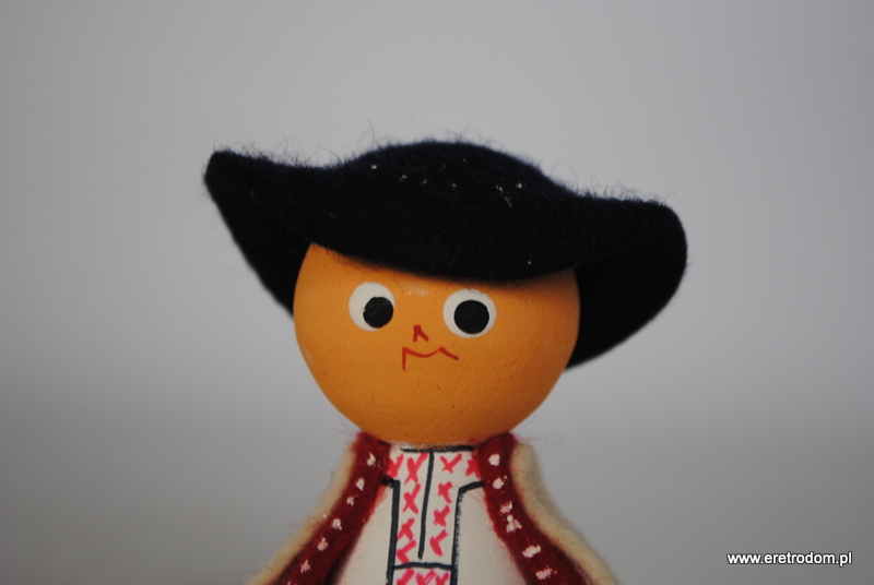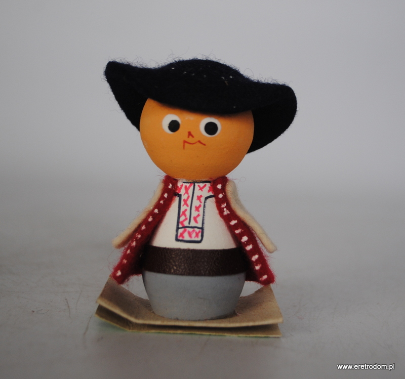 Laleczka przedstawiająca górala. Pamiątka turystyczna. Cepelia, II poł. XXw. Drewno + filc. Od spodu etykieta.