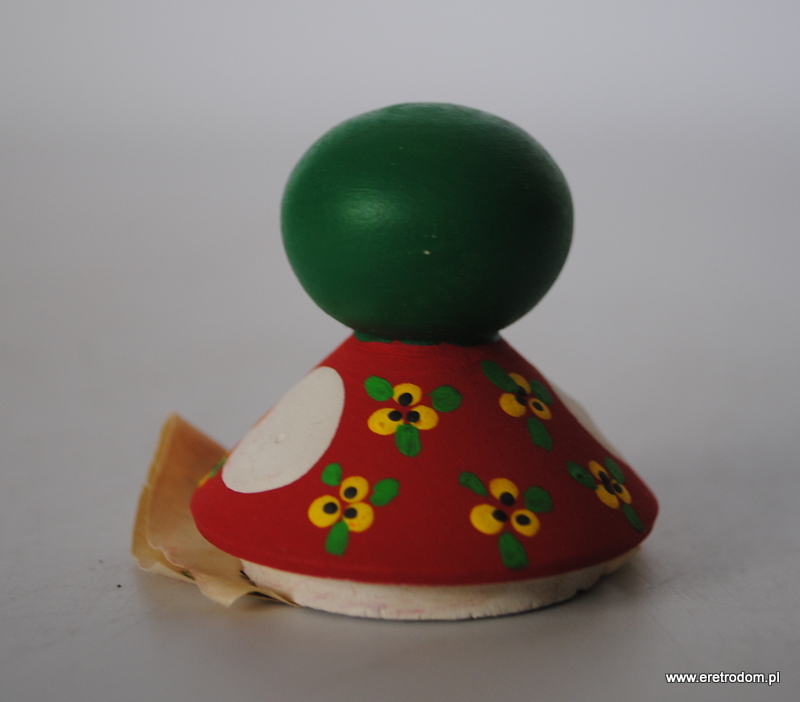 Laleczka w stroju ludowym. Cepelia, Sp. „Tradycja”, Czechowice-Dziedzice, II poł. XXw. Drewniana, ręcznie malowana. Posiada metkę.