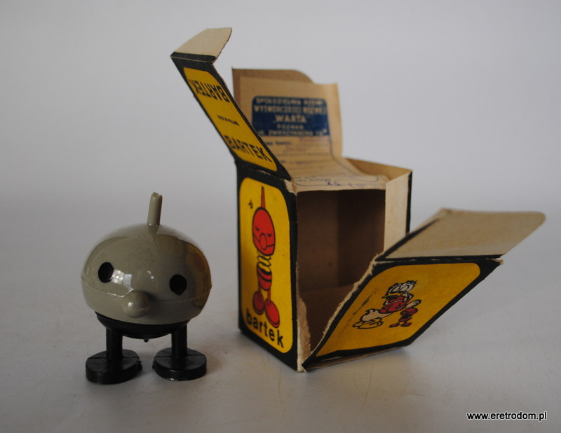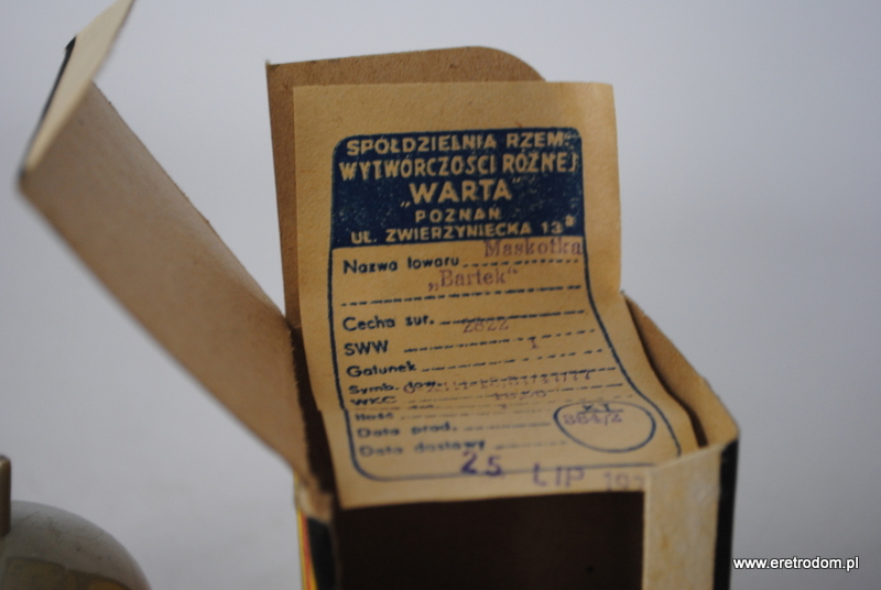 Zabawka plastikowa „Bartek”. Spółdzielnia „Warta”, II poł. XXw. W zestawie opakowanie z metką. Zabawka ładnie”dynda”.