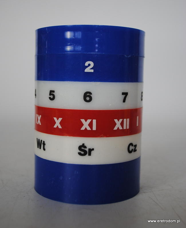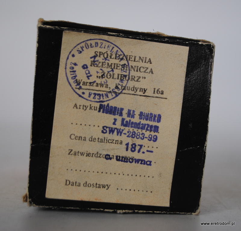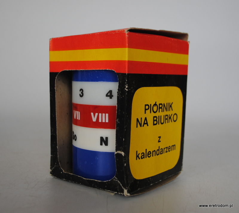Spółdzielnia Rzemieślnicza Żoliborz i kultowy piórnik z kalendarzem. Posiada ruchome elementy dzięki którym można codziennie zmieniać datę. Całość w oryginalnym opakowaniu.
