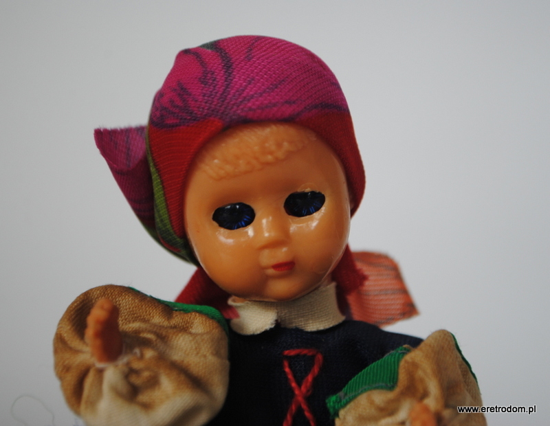 Laleczka w stroju ludowym. Wyprodukowana w jednej z polskich spółdzielni w II poł. XXw. Strój oryginalny.  Laleczka ma ruchome „śpiące” oczka. Całość świetnie zachowana.
