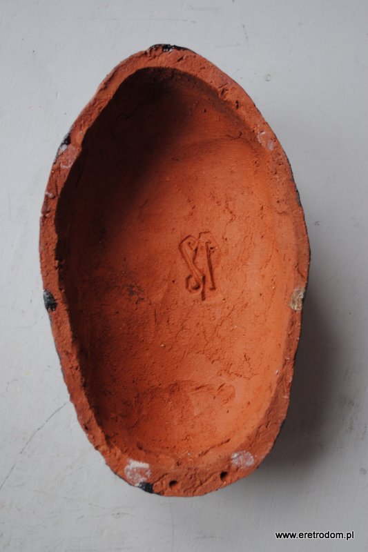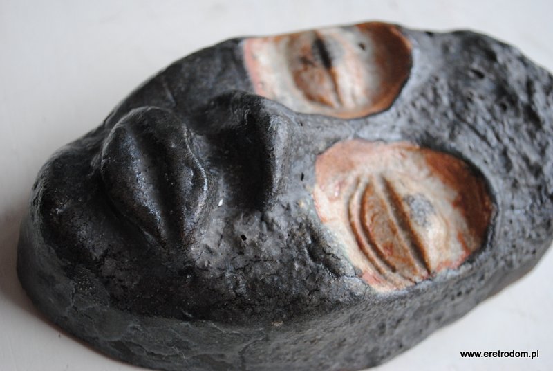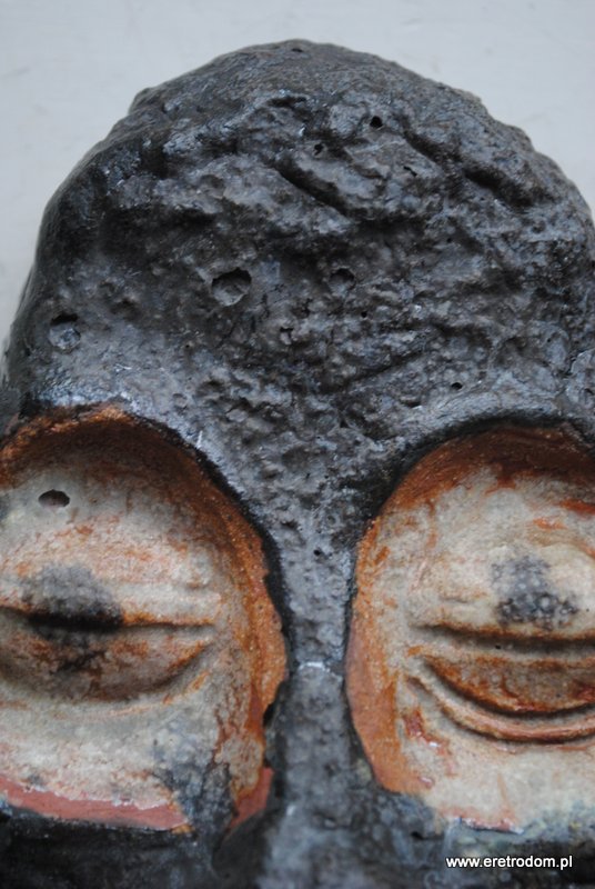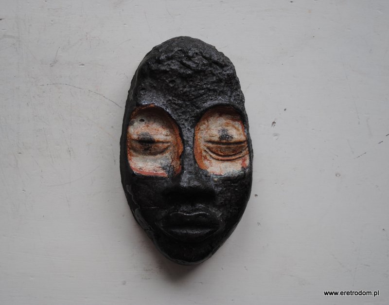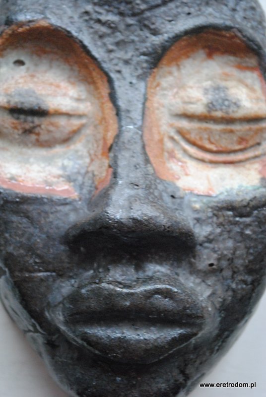 Maska afrykańska (Pracownia Stroma 5?) lata 60 XXw. . Maska wykonana z ceramiki, od spodu sygnowana wyciskiem. Jest to rarytas na rynku kolekcjonerskim.