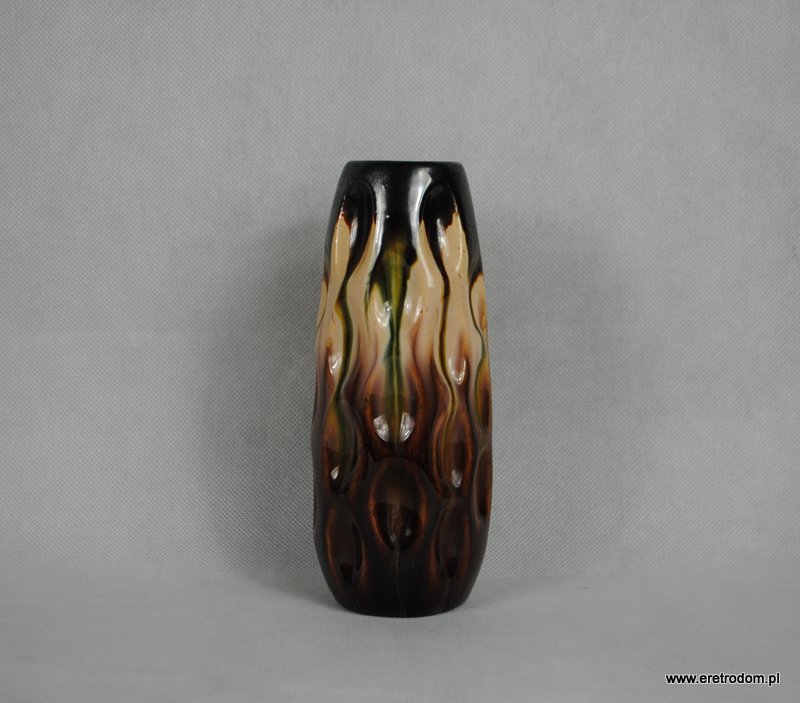 Wazon, produkcja Ceramika Krakowska Millenium. Ceramika zdobiona szkliwem naciekowym, ładnie barwiona. Spód czarny.