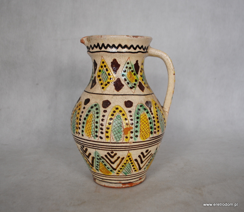 Dzbanek, ceramika pokucka huculska. Ręczna malatura.