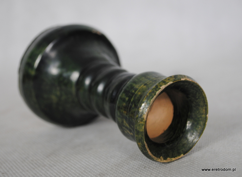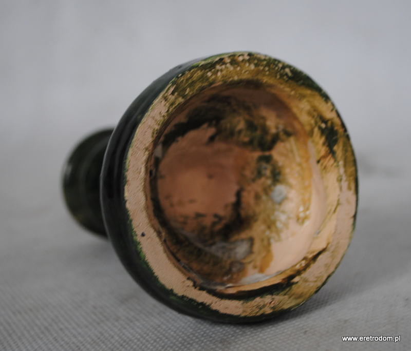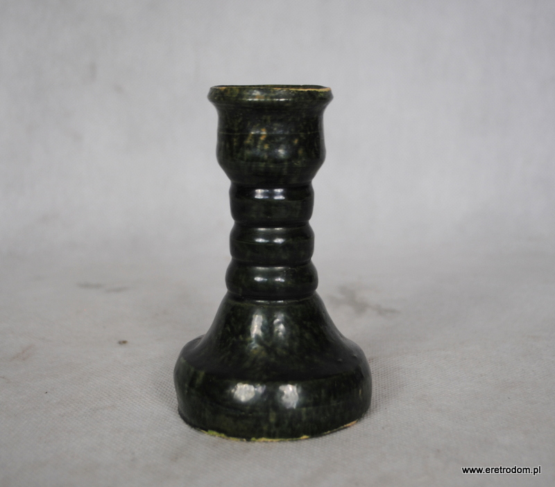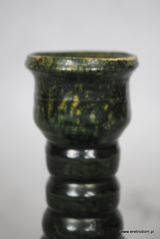 Świecznik wykonany w Spółdzielni „Chałupnik” z Iłża ( II poł. XXw.). Glinka ręcznie formowana, szkliwiona na zielony kolor.