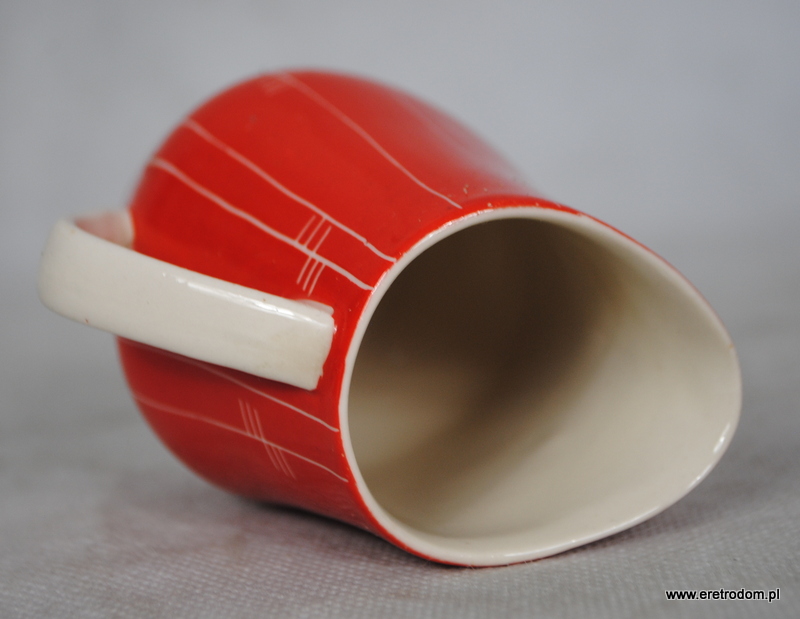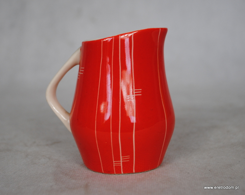Mlecznik sygnowany Chodzież, fason Iza. Projekt Józefa Września z lat 60 XXw. Porcelit malowany natryskowo, drapany.