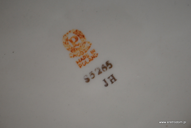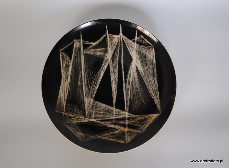 Patera sygnowana Chodzież ( II poł. XXw.). Porcelit malowany natryskowo, wybierany. Stylistyka New Look.