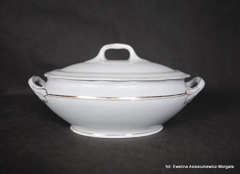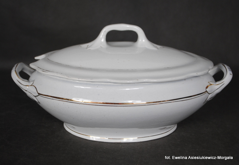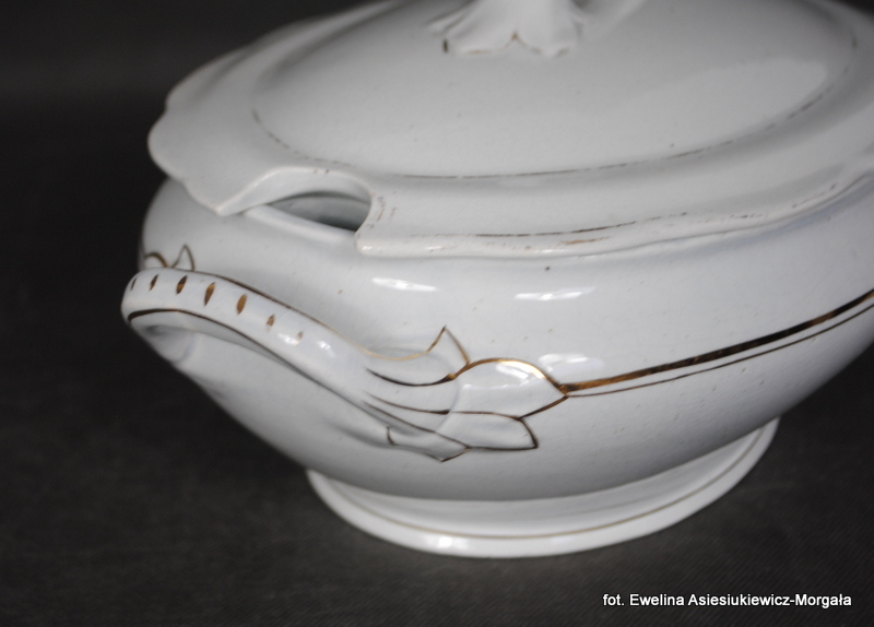Waza sygnowana Stanisław Mańczak (Chodzież), I poł. XXw. Ceramika w białym kolorze, złocona.
