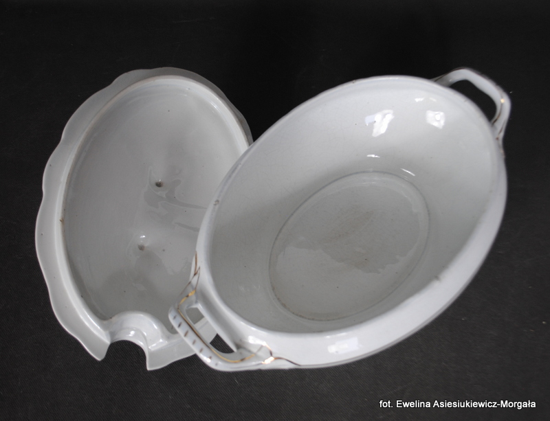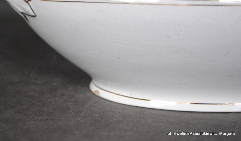 Stan dobry, drobne rysaki powstałe z biegiem lat, niewielkie przetarcia złocenia. Dwa odpryski przy dolnym rancie. Krakelura.