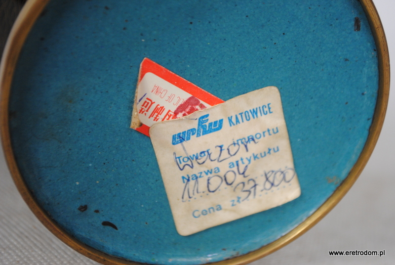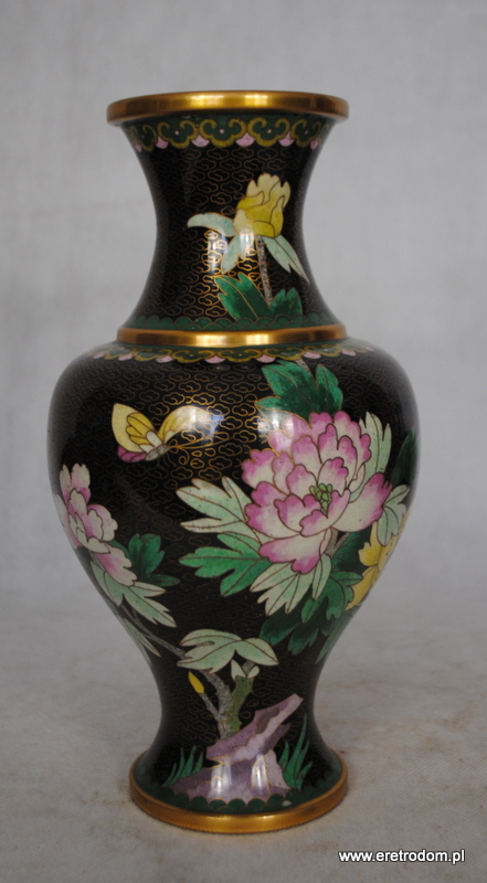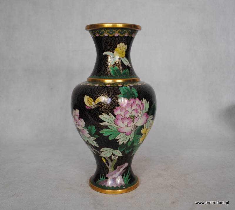 Wazon wykonany z mosiądzu. Ozdobiony emalią komórkową (Cloisonné).