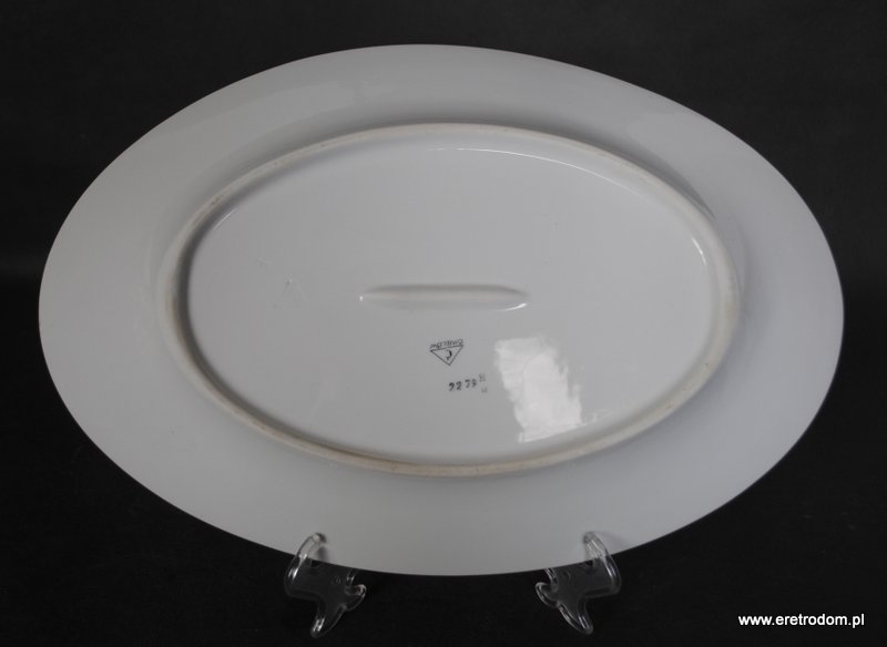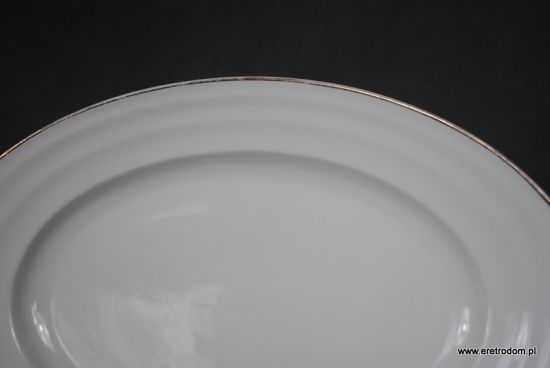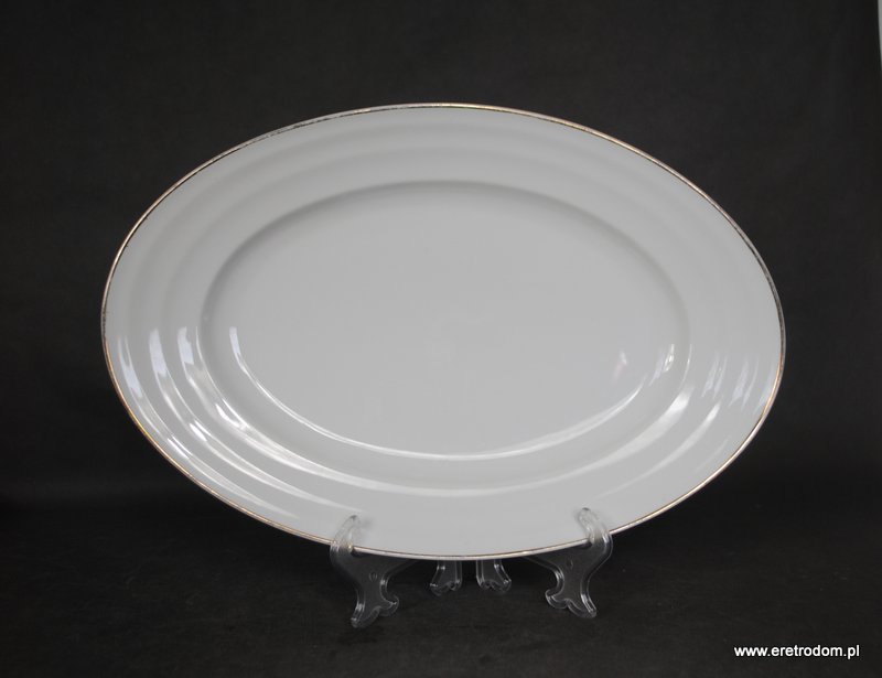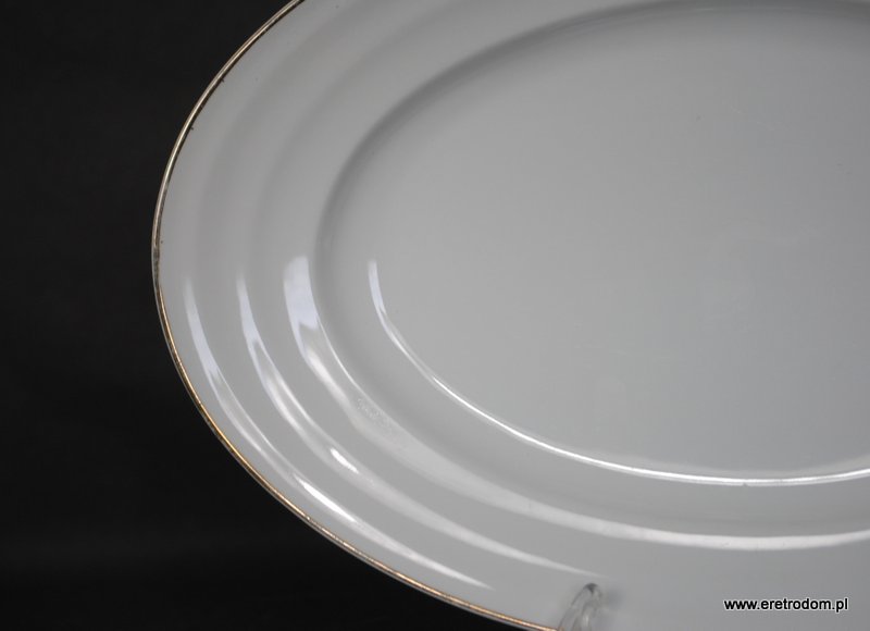 Duża patera na mięso, Ćmielów, fason Bałtyk, I poł. XXw. Biała porcelana, rant złocony.