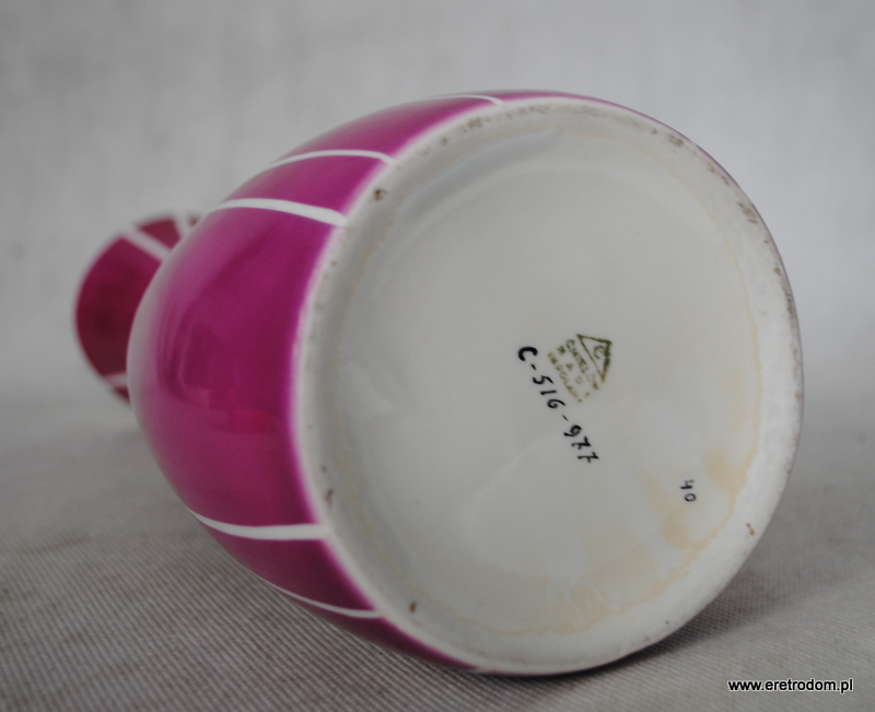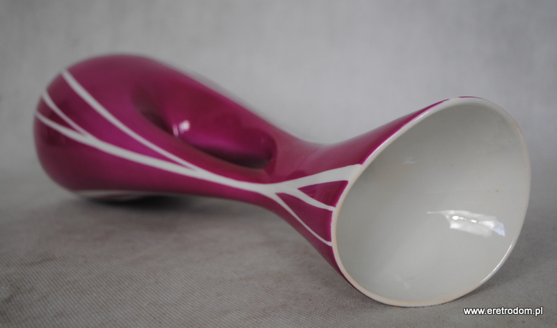 Wazon zaprojektowany przez Zbigniewę Śliwowską-Wawrzyniak dla Ćmielowa (1957r.). Biała porcelana malowana natryskowo, drapana.
