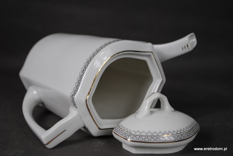 Dzbanek sygnowany Ćmielów, fason Alice, lata 30 XXw. Biała, cienka porcelana, zdobienie nr 15.
