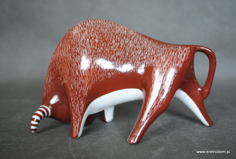 Figurka Żubr wyprodukowana w Ćmielowie w latach 50-60 XXw. Zaprojektowana przez Mieczysława Naruszewicza. Biała porcelana, natrysk wybieramy w stylu New Look.