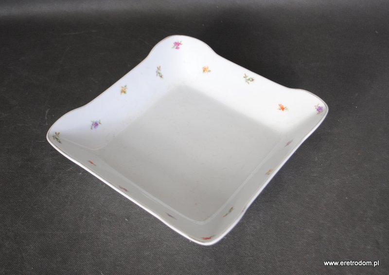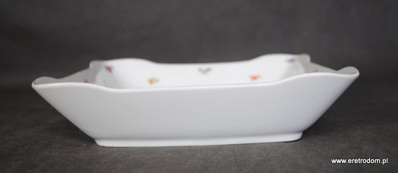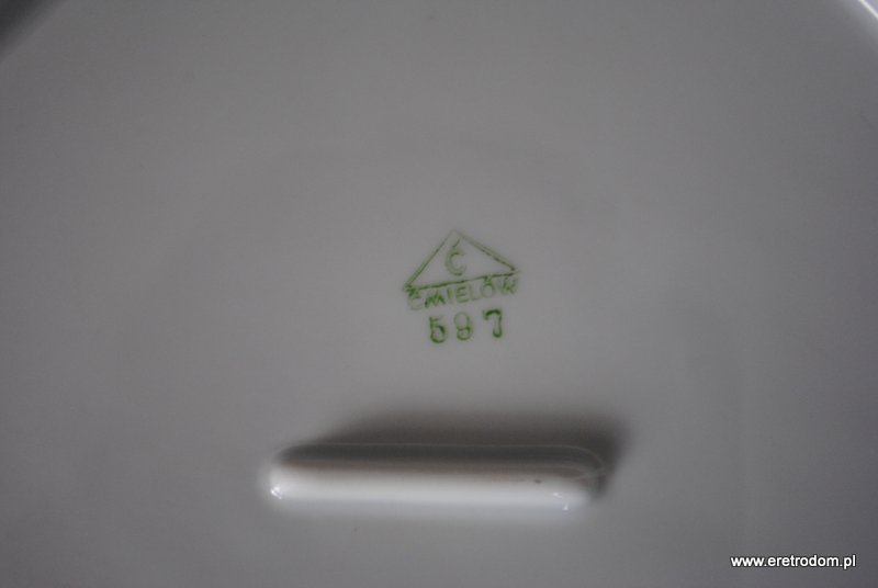 Misa, Ćmielów, I poł. XXw. Biała porcelana ozdobiona kwiatową kalką (597), rant złocony.