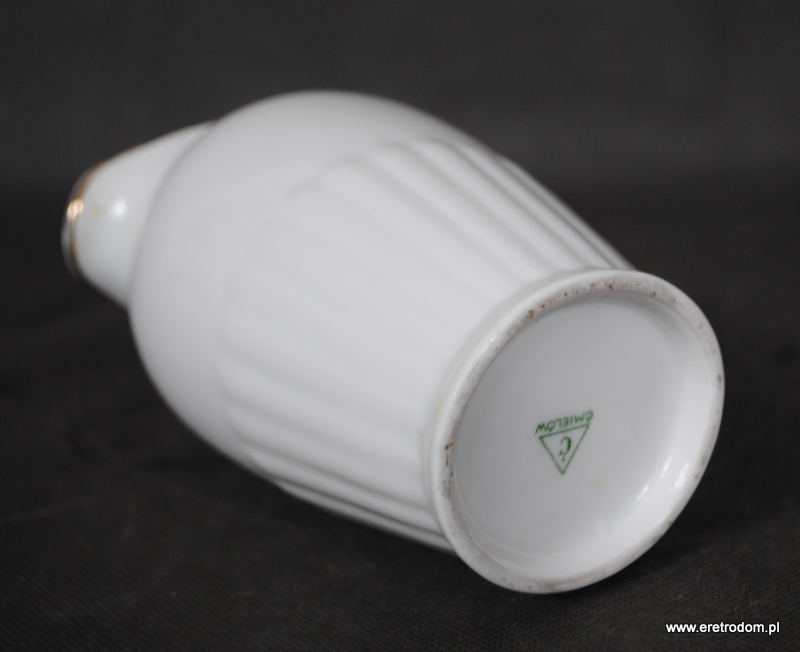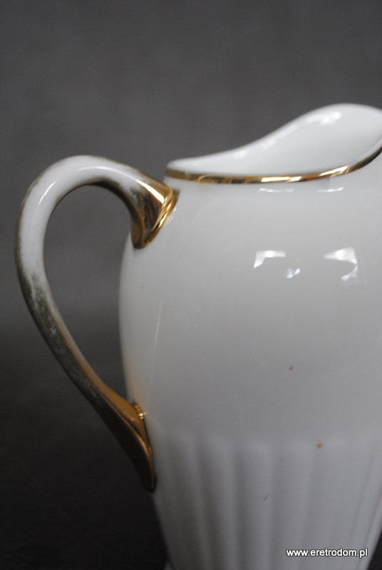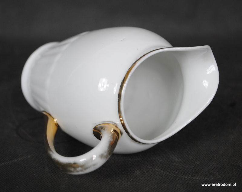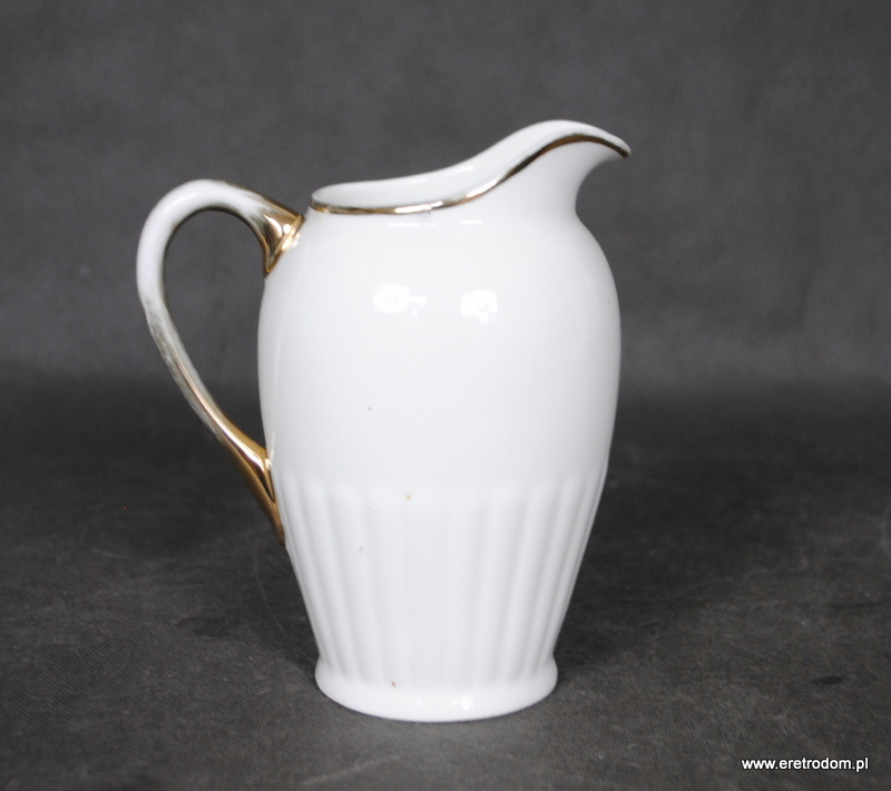 Mlecznik sygnowany Ćmielów (I poł. XXw.). Biała, delikatna porcelana, złocona.