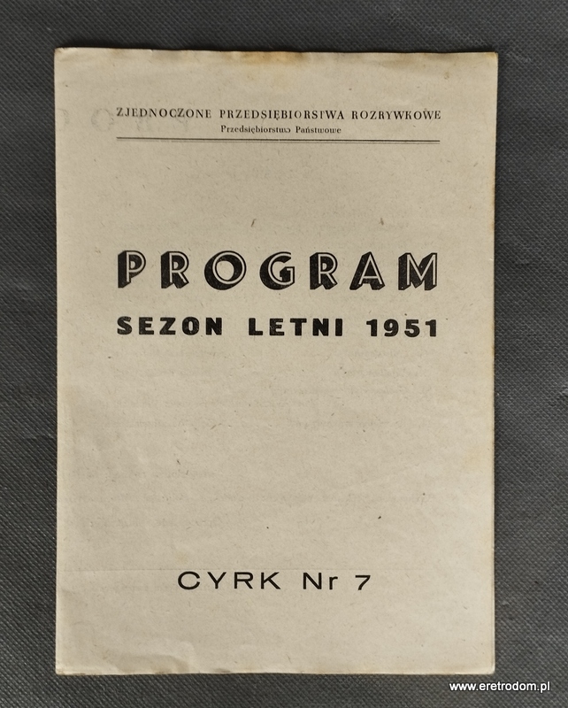 Cyrk nr 7, Program Letni 1951. Broszura wydana przez Zjednoczone Przedsiębiorstwa Rozrywkowe w 1951 roku