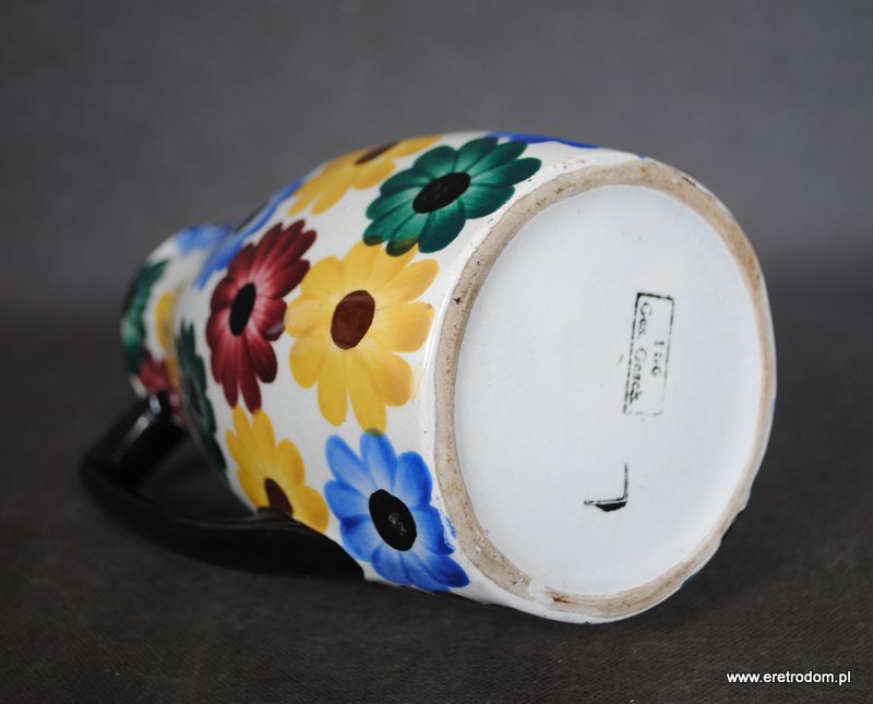 Dzbanek niemieckiej produkcji. Ceramika bardzo ładnie, ręcznie malowana w kwiaty. Od spodu oznaczenie producenta.