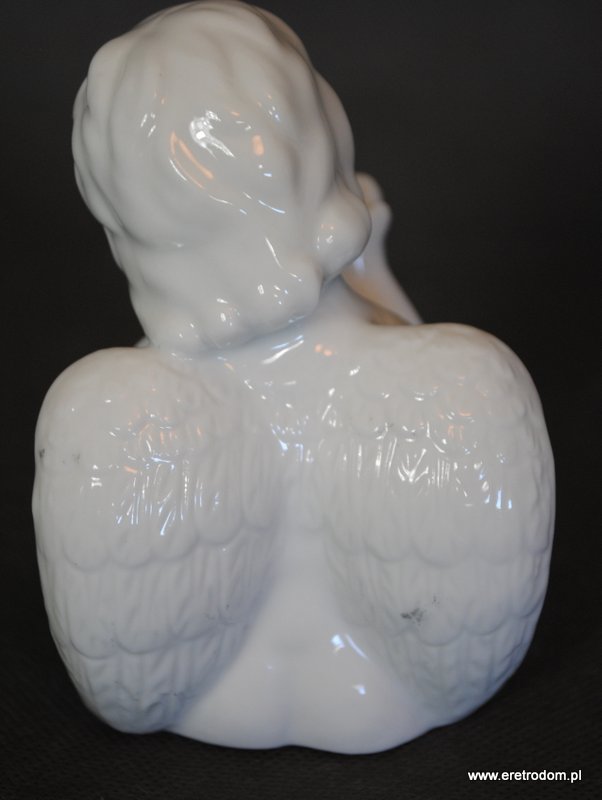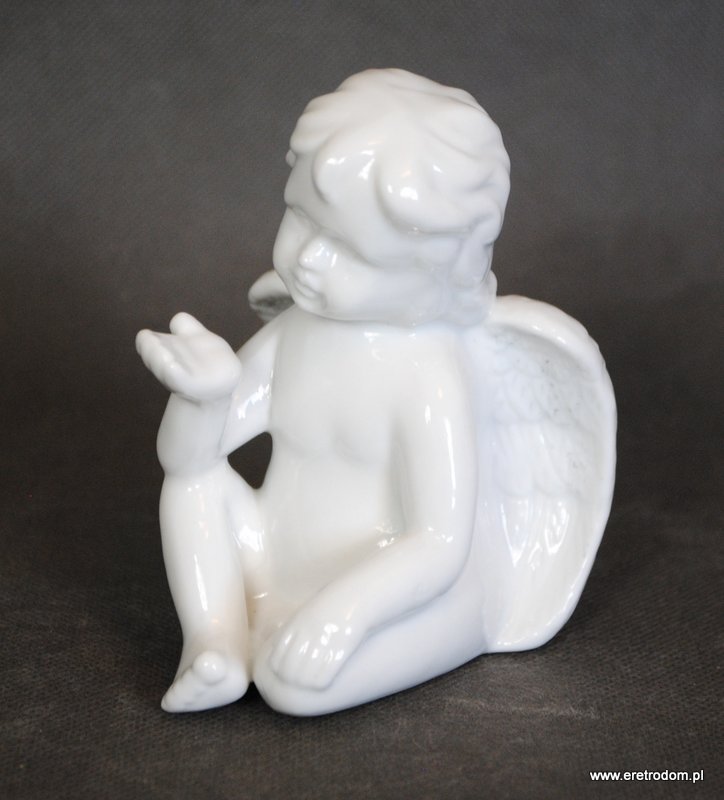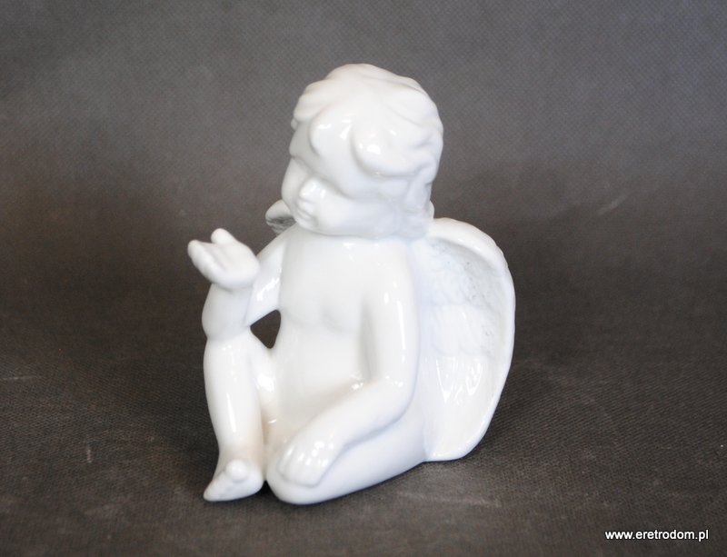 Figurka przedstawiająca aniołka. Biała porcelana, szkliwiona.