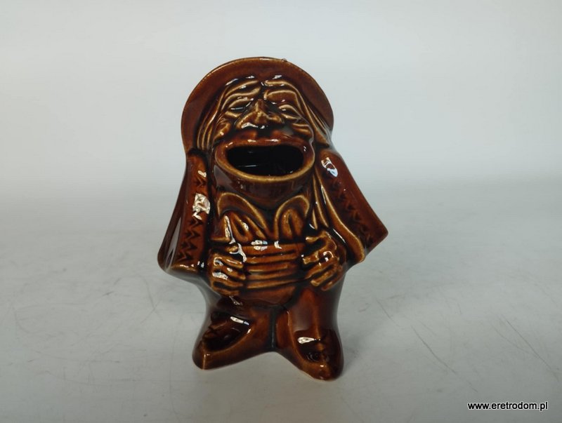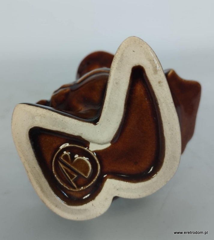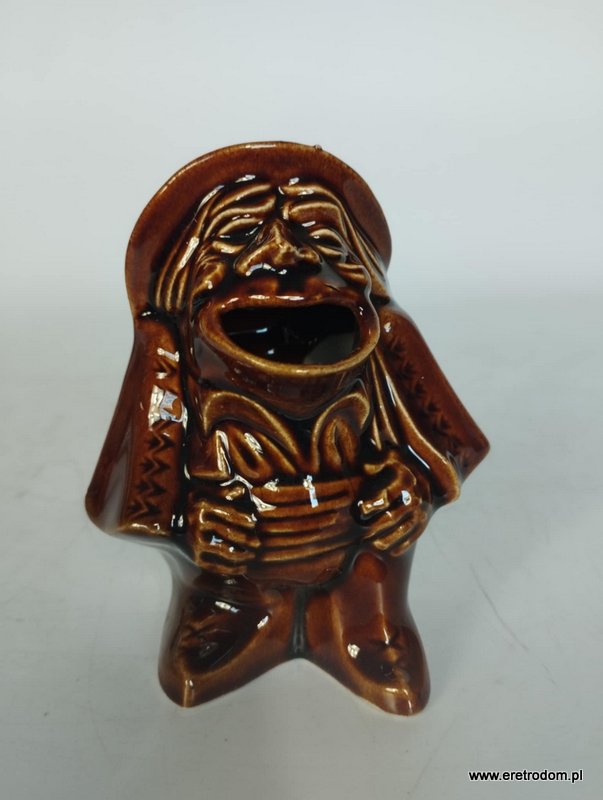 Figurka przedstawiająca górala. Wykonana z ceramiki, szkliwiona na brązowy kolor. Najprawdopodobniej polska produkcja z II poł. XXw. Od spodu tajemnicza sygnatura „AB”.