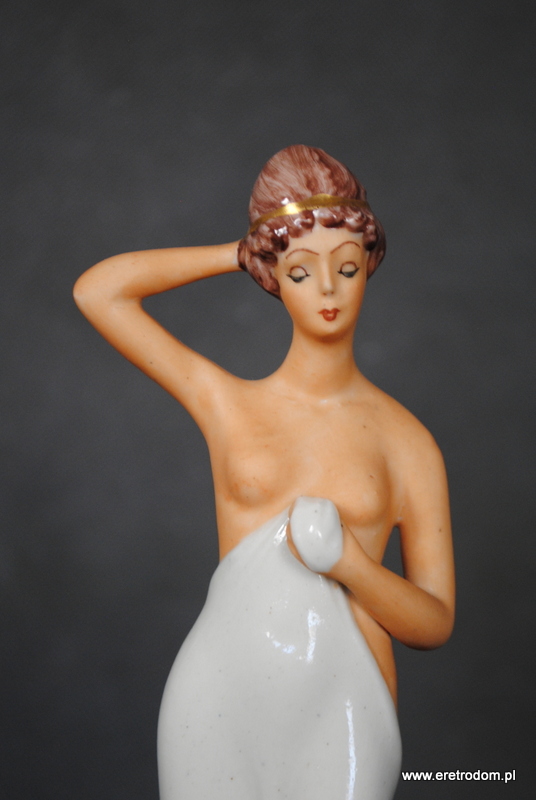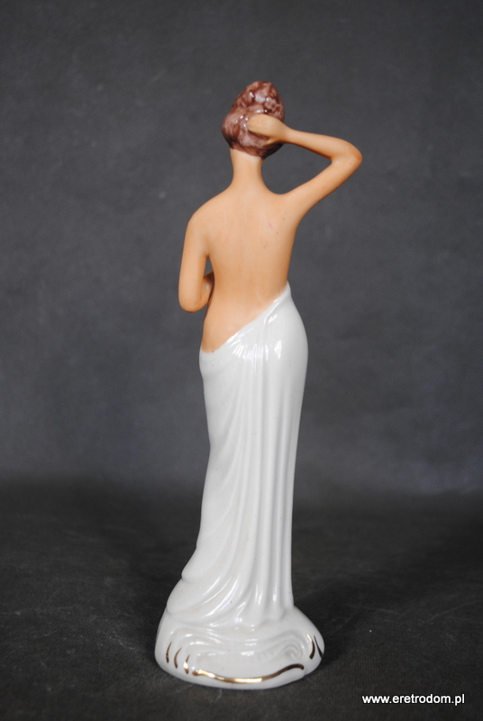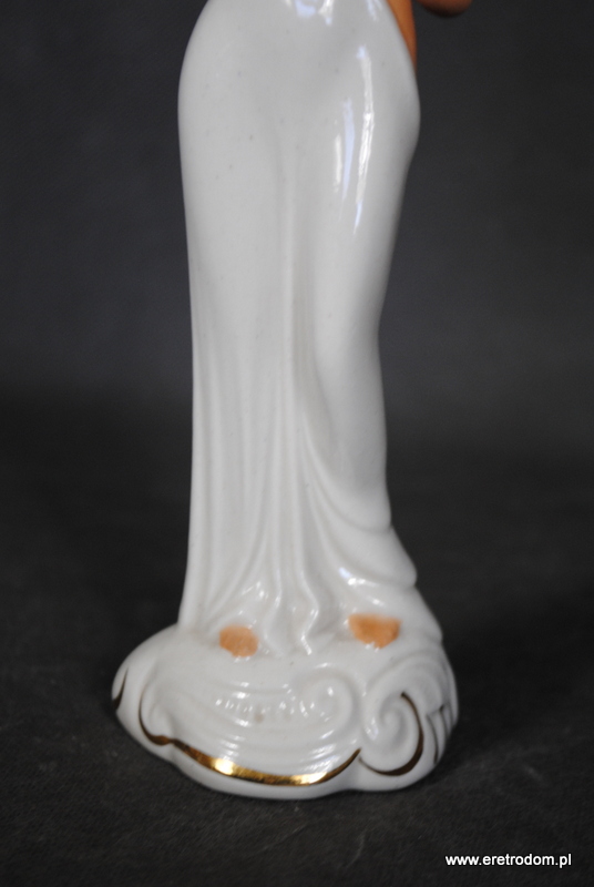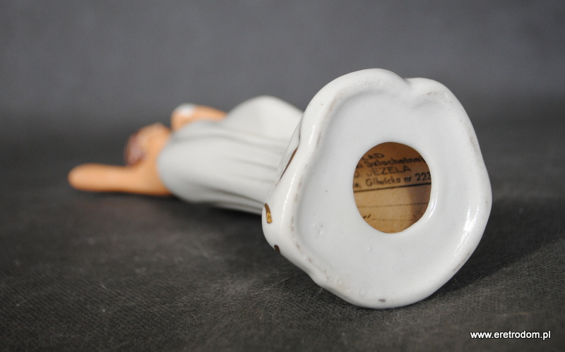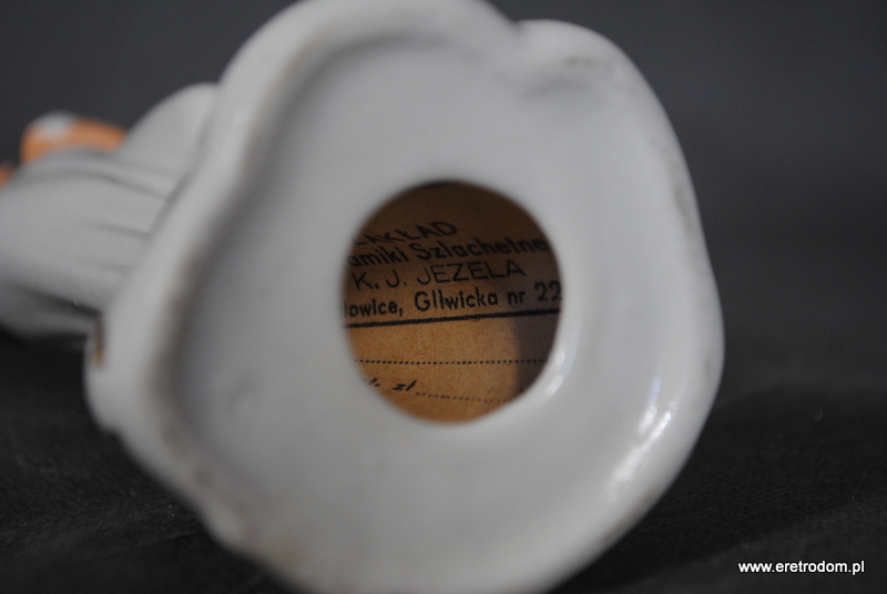 Figurka porcelanowa. Pochodzi z Zakładu Ceramiki Szlachetnej Jana Jezela w Katowicach. Ręcznie malowana. Od spodu posiada karteczkę producenta.
