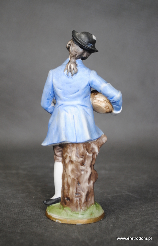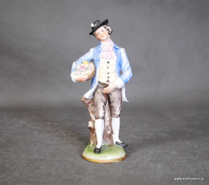 Figurka przedstawiająca młodzieńca z koszem. Biała porcelana (biskwit) ręcznie malowana.