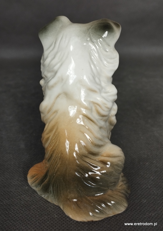 Figurka przedstawiająca psa. Ręcznie malowana. od spodu odręczny napis „Azor”.