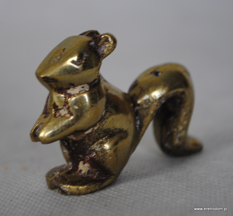 Figurka przedstawiająca wiewiórkę. Wykonana z mosiądzu w II poł. XXw. Ciekawy element dekoracyjny.
