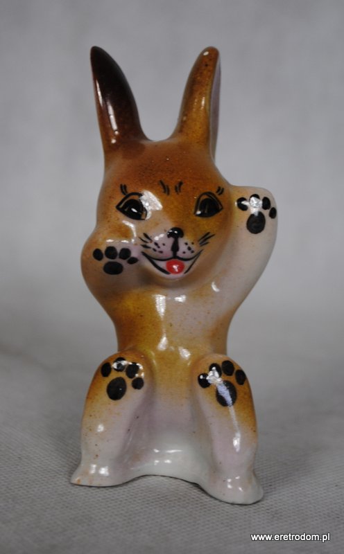 Figurka przedstawiająca zajączka. Wykonana z jednej z polskich manufaktur w II poł. XXw. Porcelana ręcznie malowana.