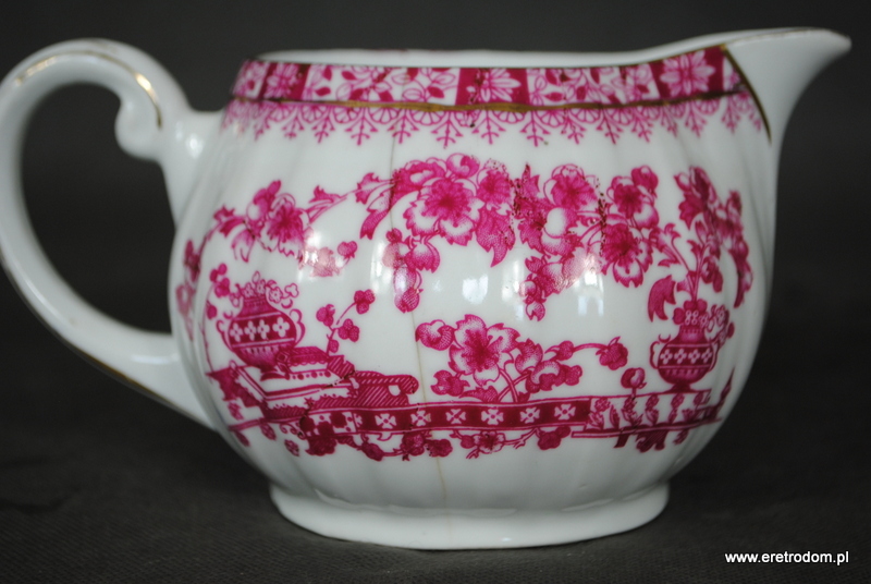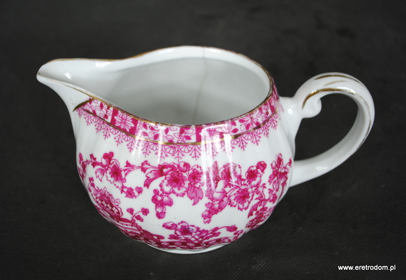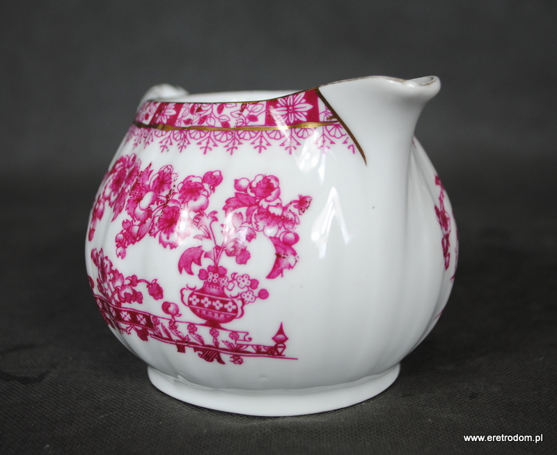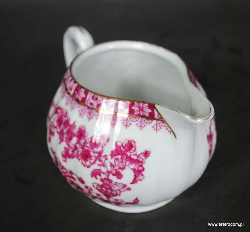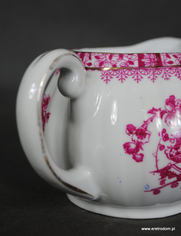 Mlecznik sygnowany Giesche Fabryka Porcelany dawniej Czuday S.A ( sygnatura z lat 1925-1929). Piękna biała porcelana zdobiona czerwoną kalką, złocona.