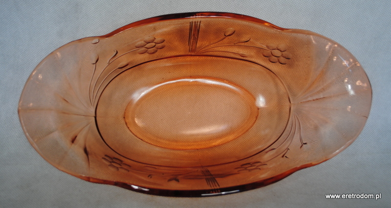 Gondola wyprodukowana najprawdopodobniej w jednej z niemieckich hut. Szkło prasowane, barwione w masie.